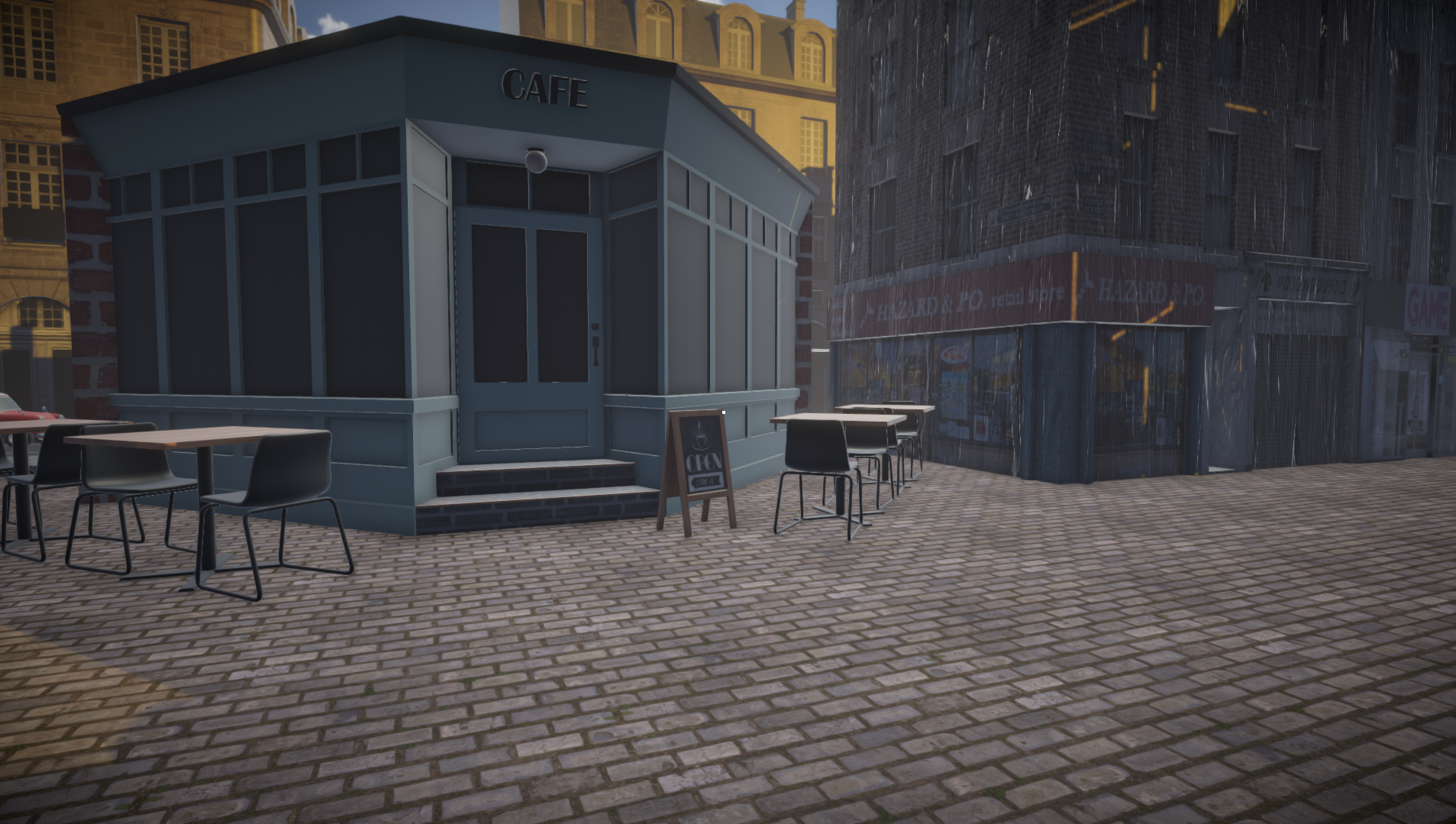 - Corner cafe — By patrakeevasveta, licensed under CC BY 4.0 (In the scene, I added a wall at the back of the café.)